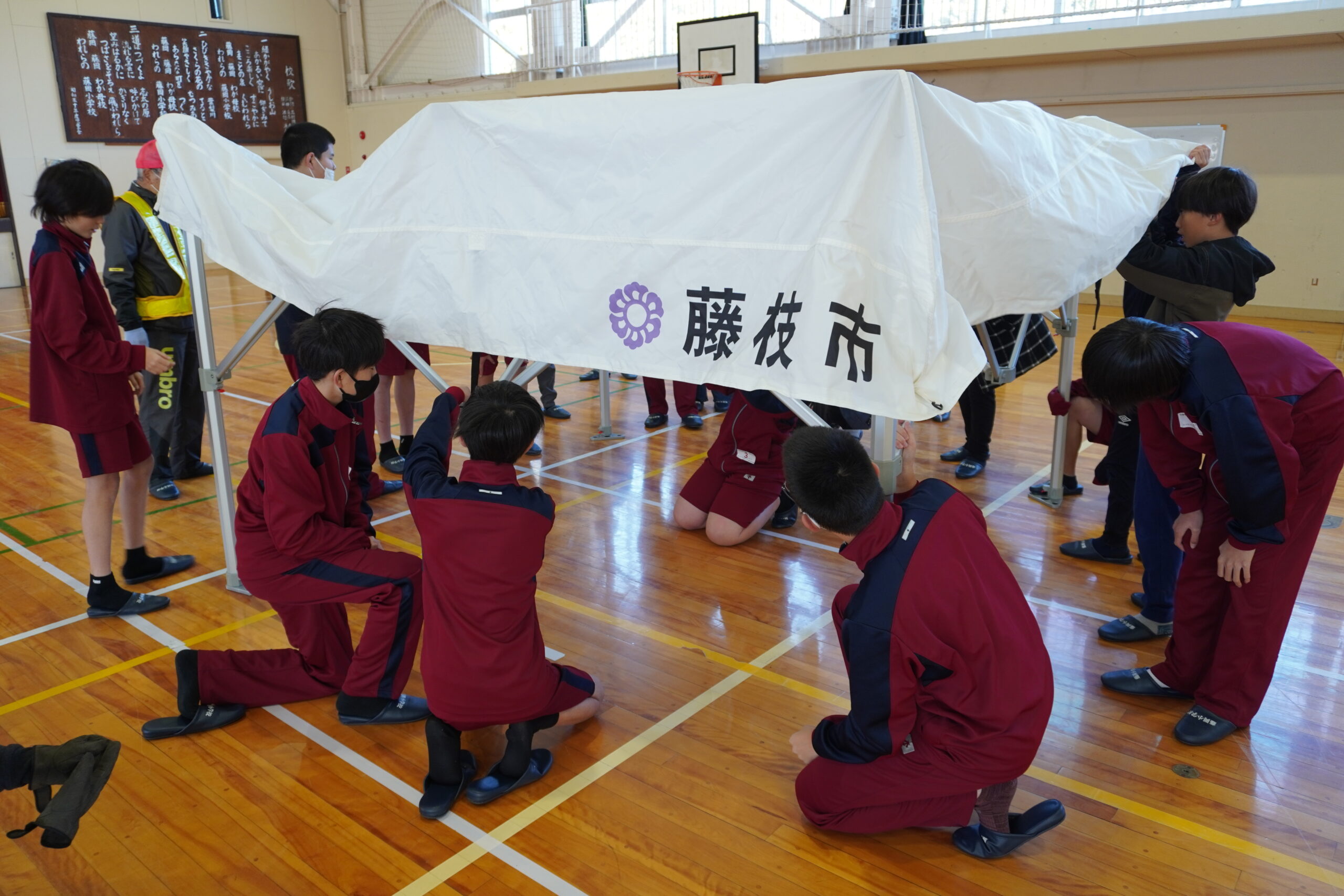 午前9時から11時に、藤岡小学校の駐車場、体育館、グラウンドで訓練を行いました