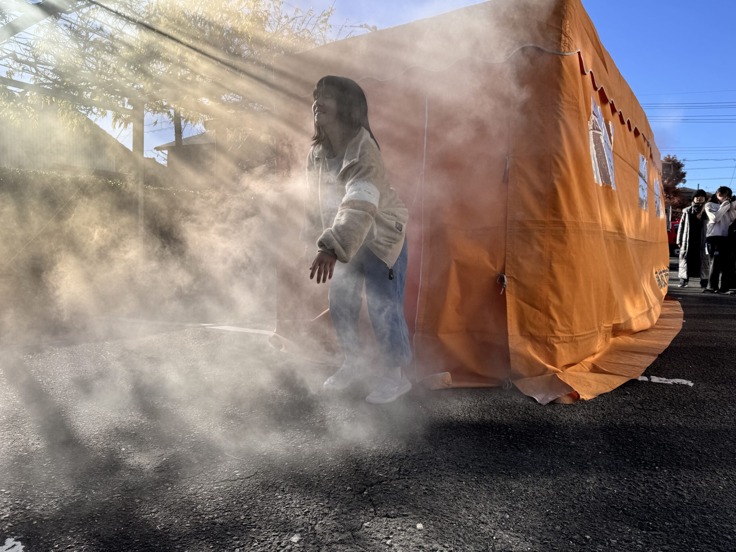 訓練は、誘導担当者(PTA地区長)が小中学生のグループ (約20名) を移動させ、5つの訓練種目を各20分で順番に体験しました
