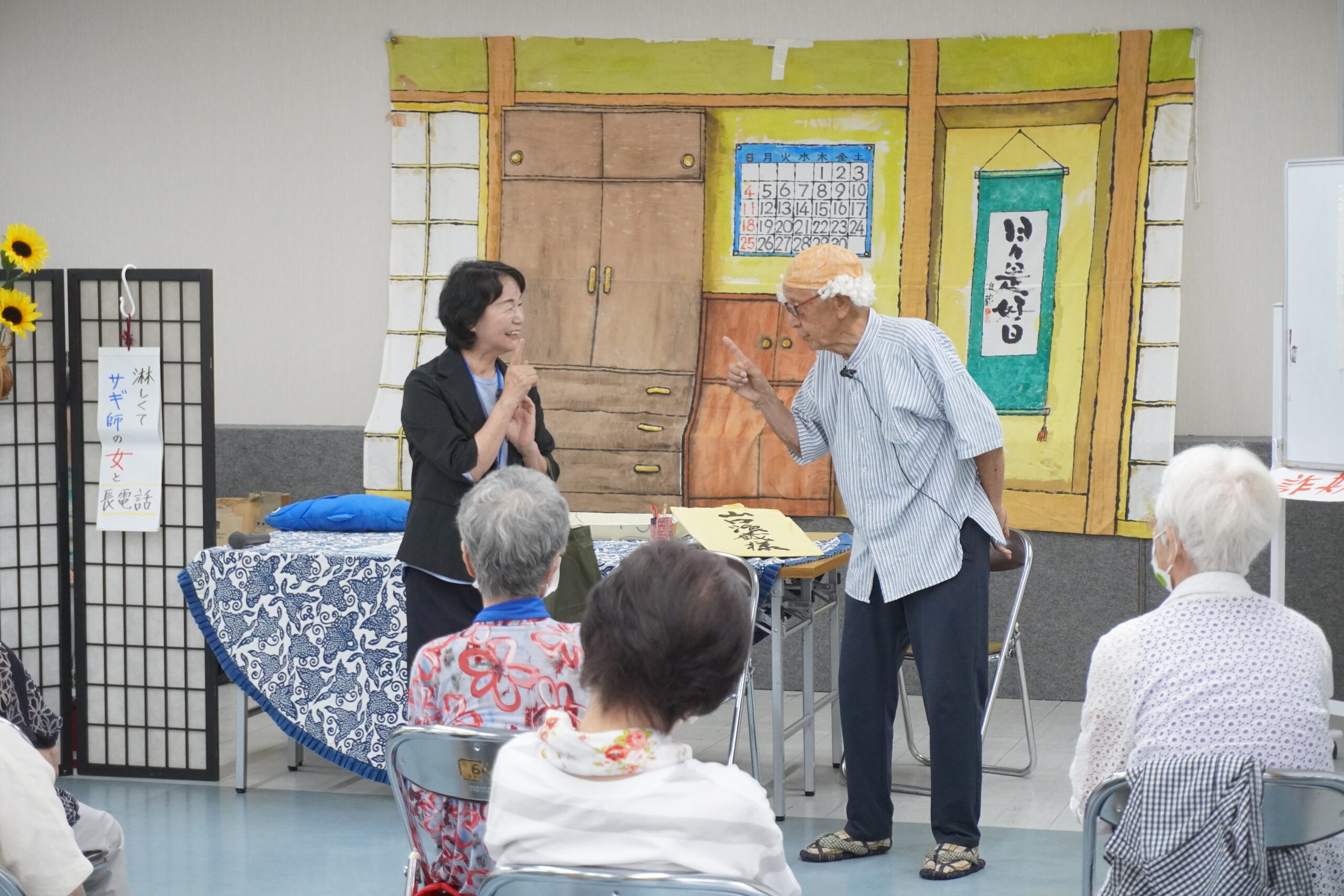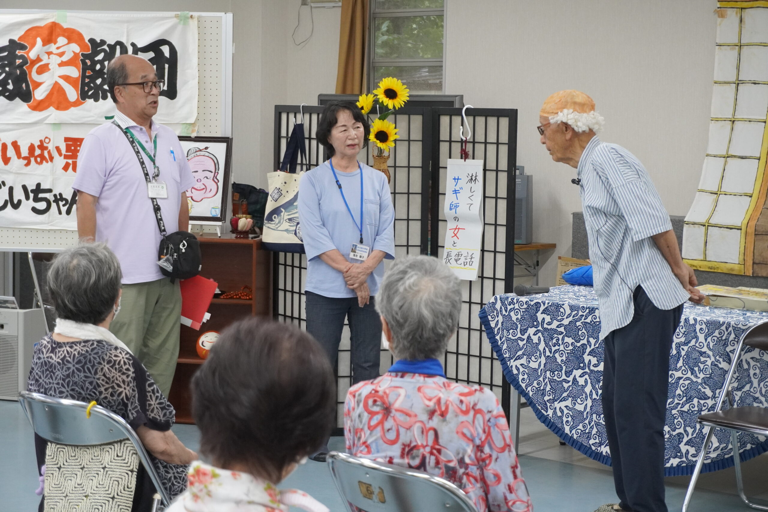 「浪蔵笑劇団」 2024年7月12日 最終更新日時 : 2024年7月13日 fujioka-j 7月12日、藤岡ふじばかまがありました 今日は「浪蔵笑劇団」による劇でした 振込詐欺への注意喚起や最近の天候、地域の話題など、様々な話題が盛り込まれた劇を披露していただきました 最後に「高校3年生」の替え歌で「年金生活者」を皆で楽しく歌いました 「浪蔵笑劇団」の皆様、ありがとうございました