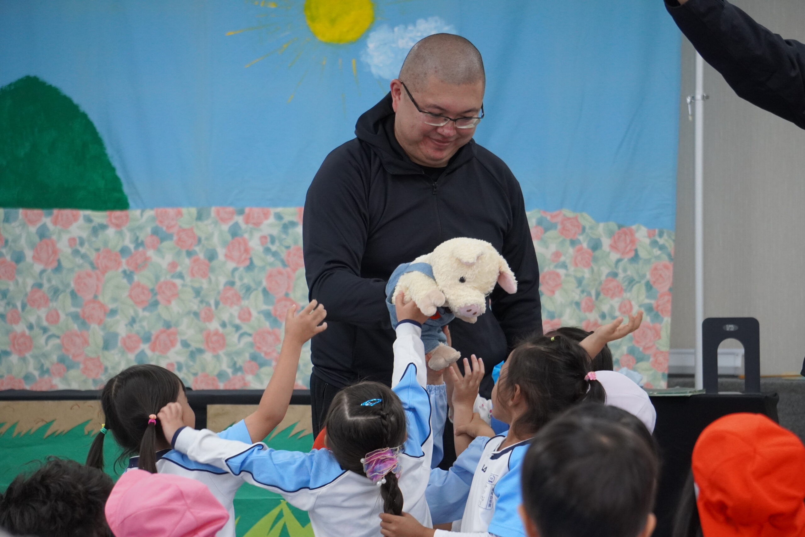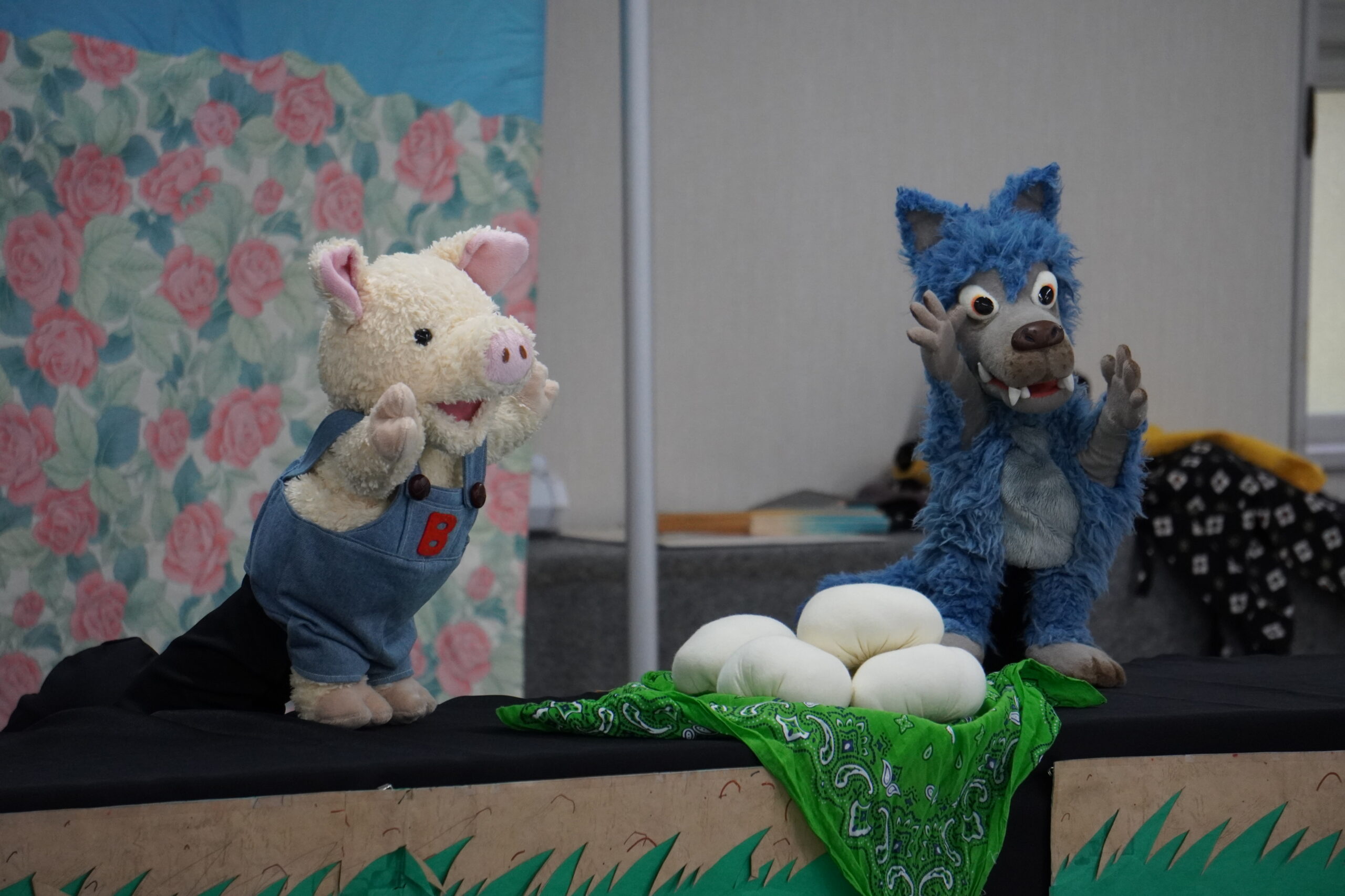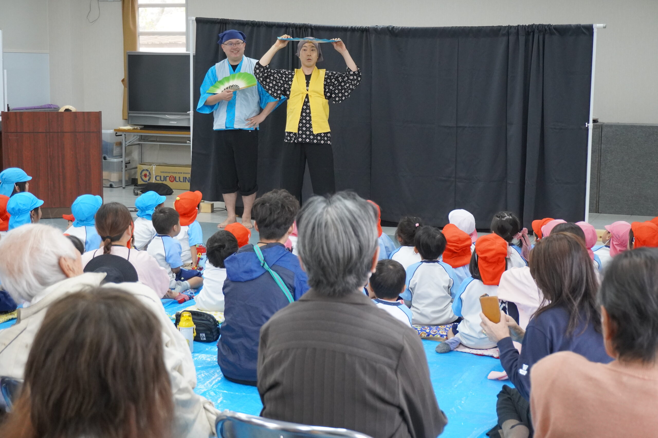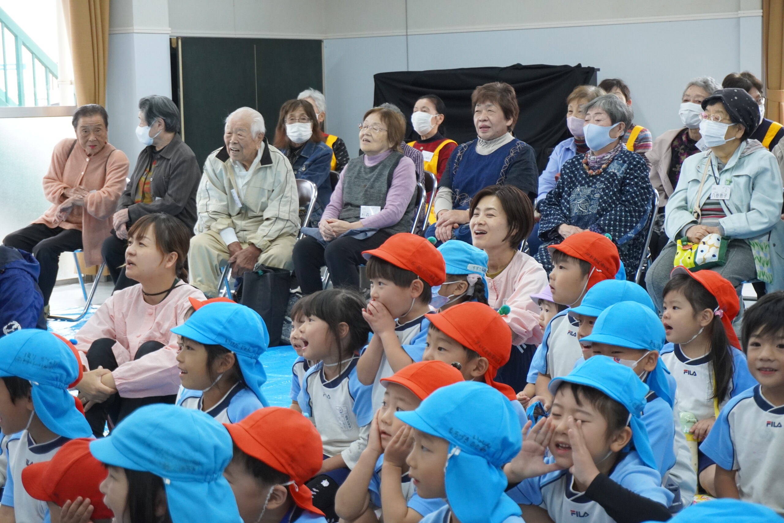 続いて人形劇が上演され、園児の皆さんの笑い声や声援が会場に広がりました