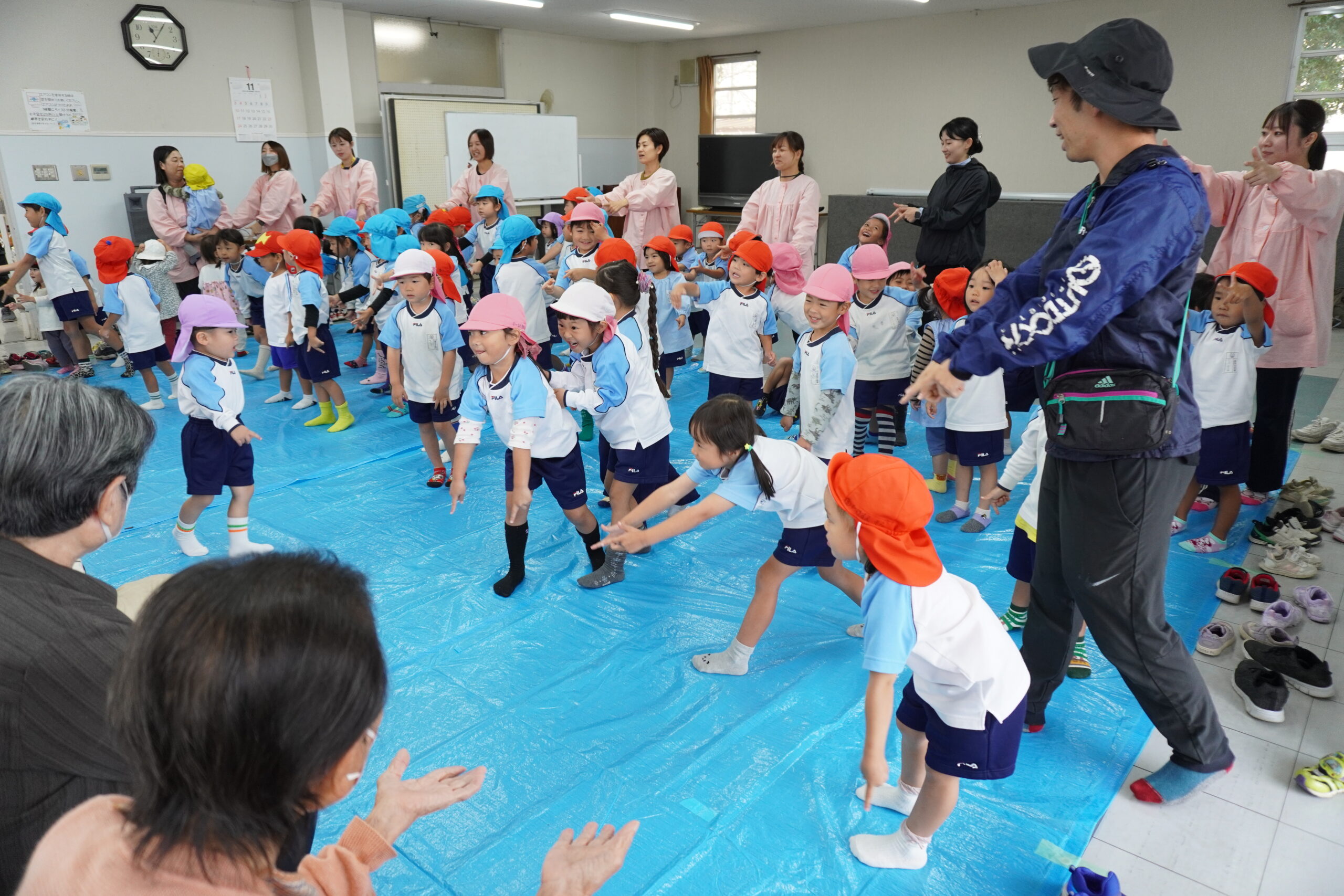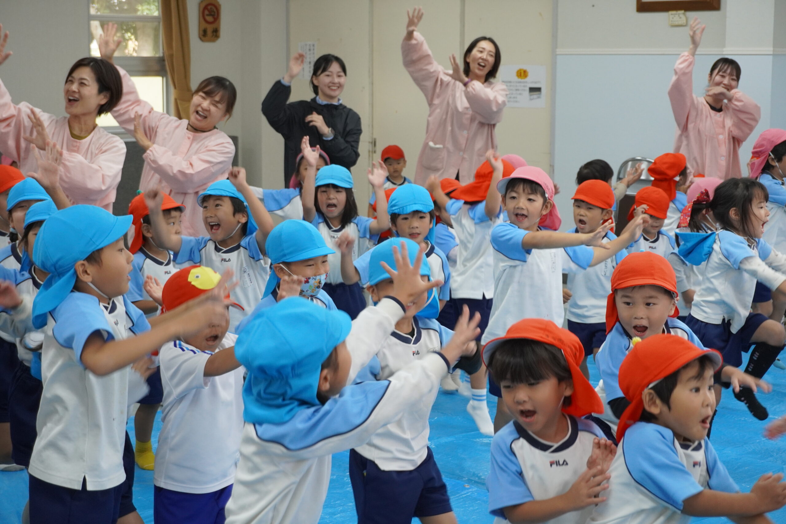 最後に、園児の皆さんが9日に行われる運動会で披露する歌を元気いっぱいに歌ってくださいました