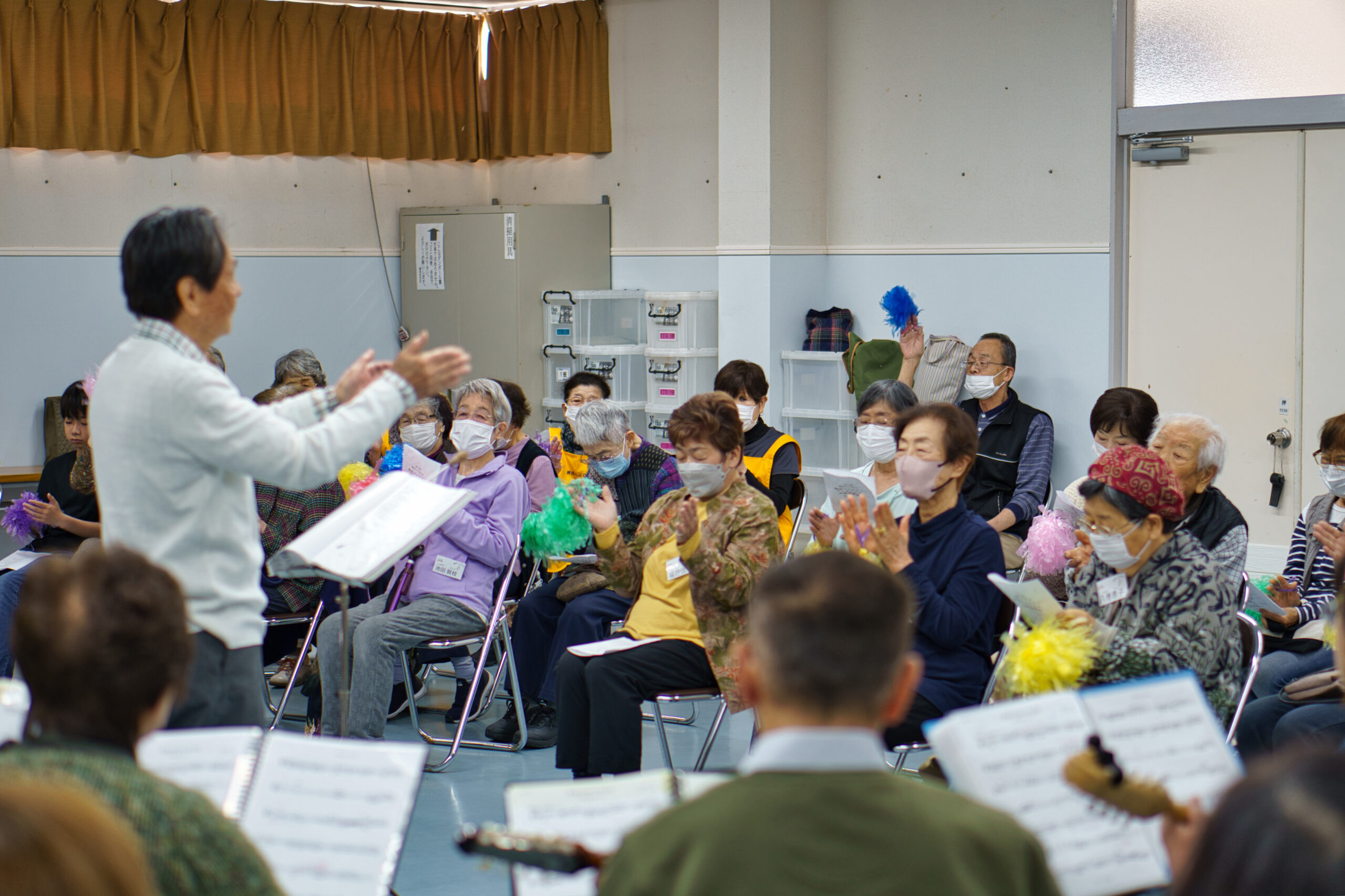 第1部では、「海に来たれ」「いい日旅立ち」が演奏され、続く「青い山脈」「月の砂漠」では、参加者が一緒に歌ったりジェスチャーを交えたりしながら楽しみました
