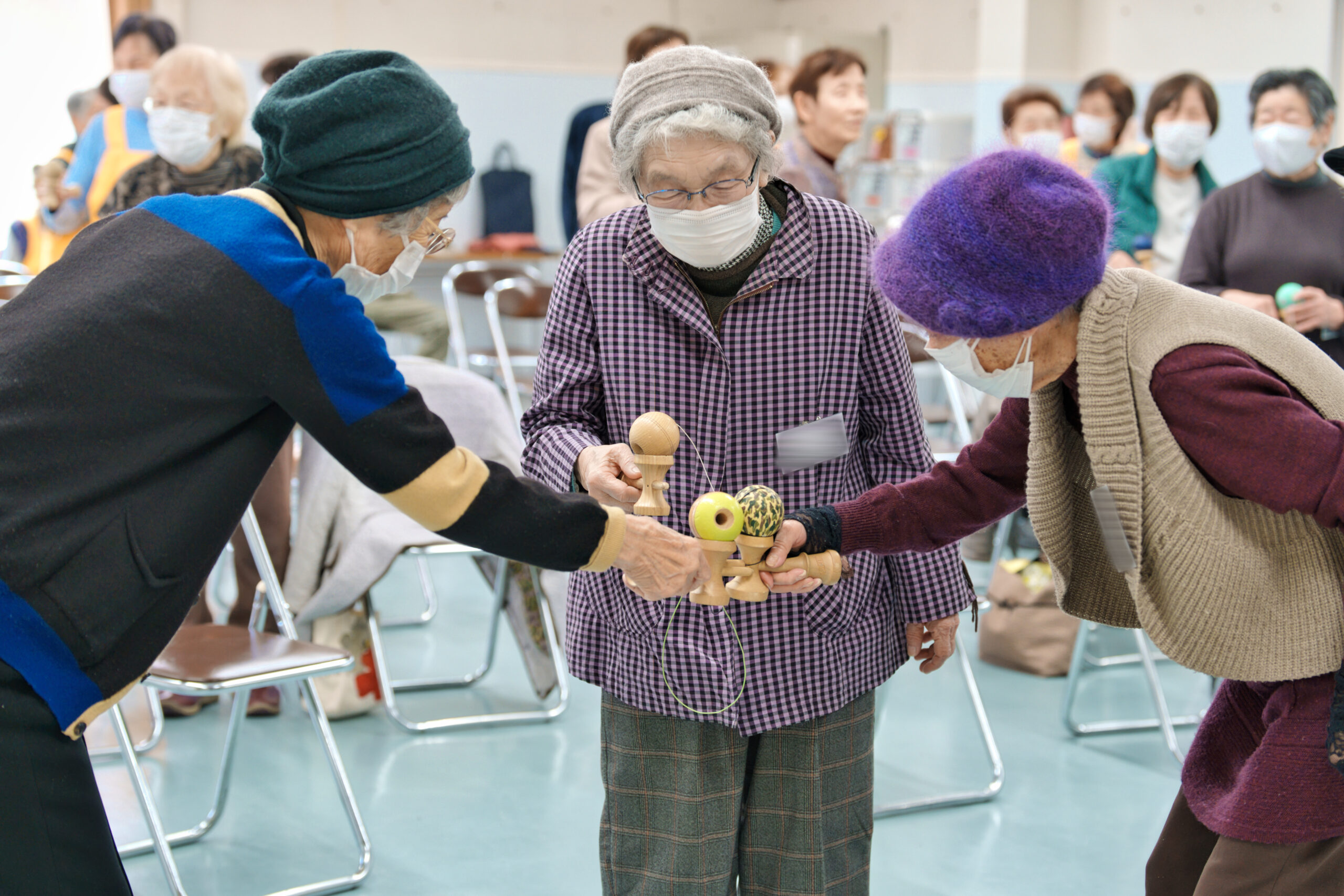 けん玉は遊びながら運動ができ、体幹強化やビジョントレーニング、コミュニケーションツールとして効果的だそうです