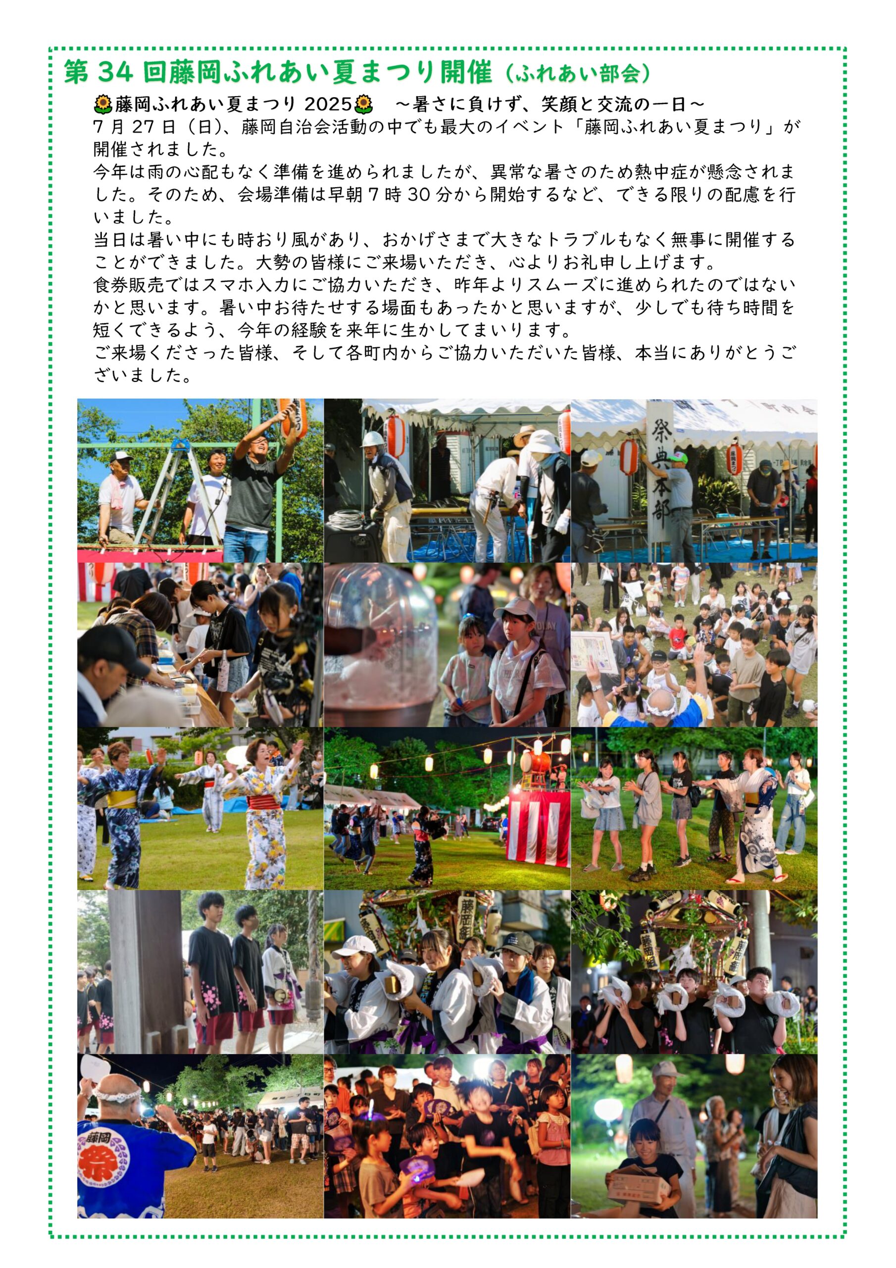ご来場くださった皆様、そして各町内からご協力いただいた皆様、本当にありがとうございました。