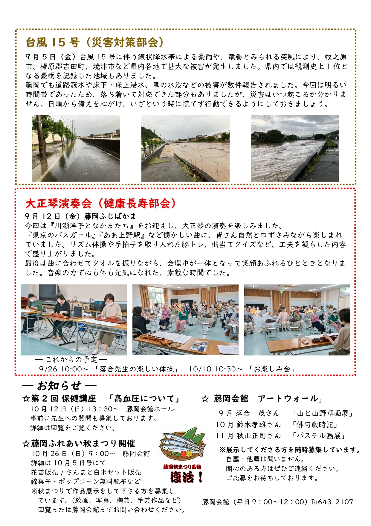 ※秋まつりで作品展示をして下さる方を募集しています(絵画、写真、陶芸、手芸作品など) 回覧または藤岡会館までお問い合わせください。