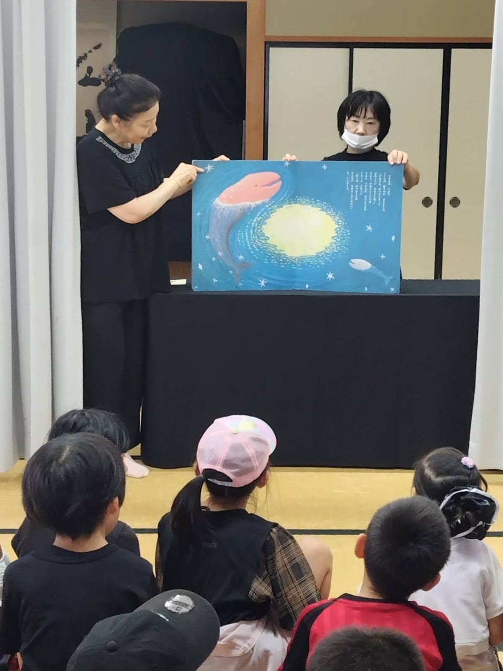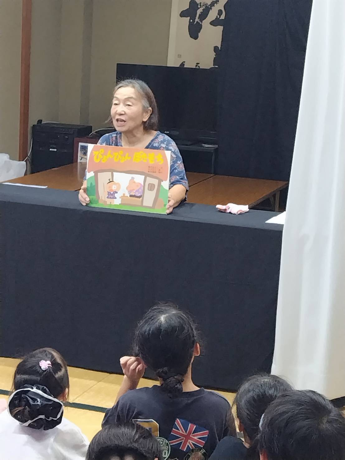 大型絵本や紙芝居を使った読みかたりに、子どもたちは夢中になって耳を傾けていました