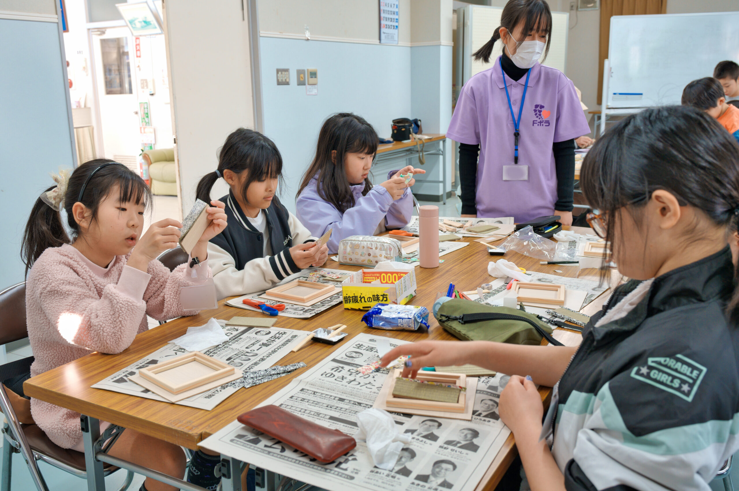 角まできれいに仕上げる作業に苦戦しながらも、真剣な眼差しで取り組んでいました